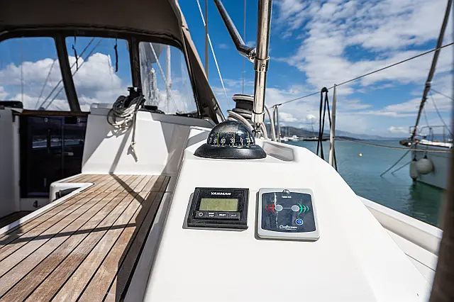 Klimaanlage , Fäkalientank , Bimini , Sprayhood , Beiboot , Lautsprecher im Cockpit , Elektrische Toilette , Solar-Panele , Cockpit-Kissen