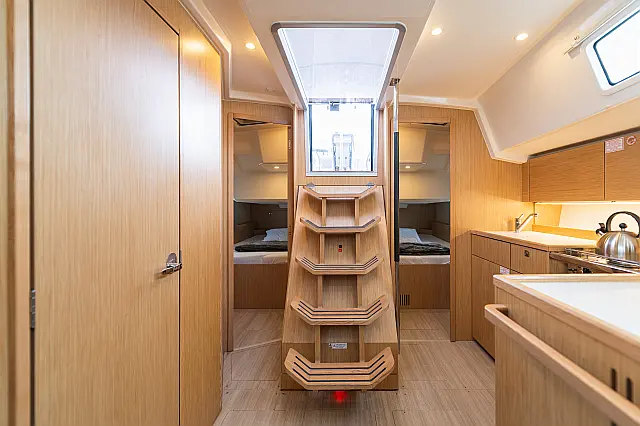 Klimaanlage , Umwandelbarer Tisch , Fäkalientank , Bimini , Sprayhood , Beiboot , Lautsprecher im Cockpit , Elektrische Toilette , Solar-Panele , Cockpit-Kissen , Teak Cockpit