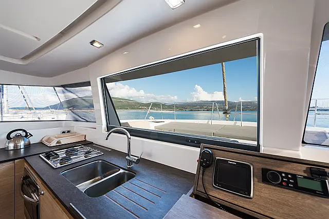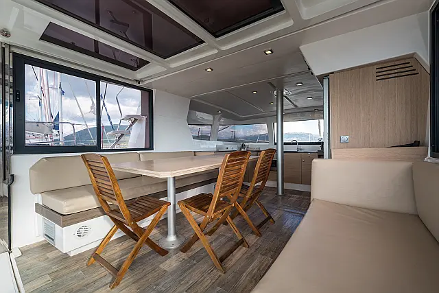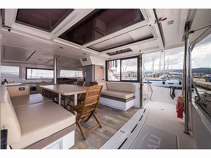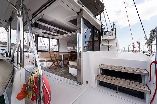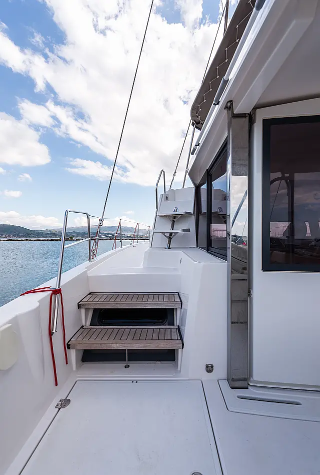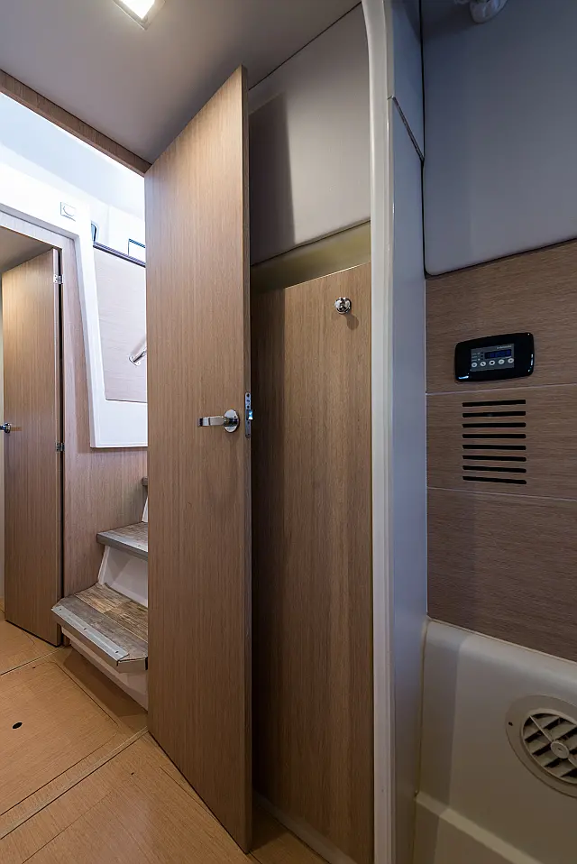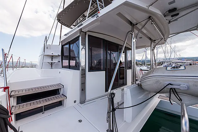 Fäkalientank , Bimini , Beiboot , Elektrische Winch (Segel) , Elektrische Toilette , Klimaanlage , Generator , Cockpit-Kissen , Sprayhood , Badeplattform , Solar-Panele