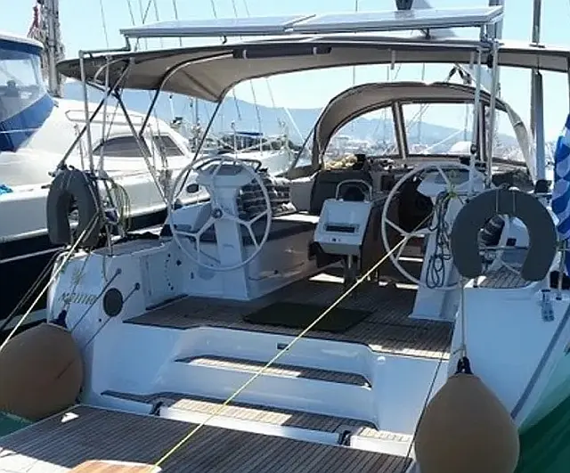 Charter this beautiful Bavaria 46 ” Built year 2015 “Amore “ The Bavaria 46 Cruiser is an excellent choice for demanding customers. The cockpit is both spacious and functional. with folding table and a twin steering wheel system offer easier access to a gangway. At the Cockpit you will have two steering weel carbon, Cockpit cushions, the spray hood and Bimini will protect your crew from the sun, wind and the rain. A furling mainsail and a roll Genoa improve yachts sailing performance. Have automatic pilot, bow thruster, and Gps Plotter at the cockpit and inside. Radar ,Have also radio CD mp3 radio with Bluetooth and speakers on the inside and outside and two VHF the one portable. It has generously appointed interior with three bathrooms and three electrics toilets. A full-sized two refrigerators 160L and 110L with freezer, and surprisingly handy storage compartments. Also have sunshade and mosquito screen on hatches in the salon and the cabins also. The cabins offer excess light and great air circulation. Plenty of room and storage, with wide beds characterize four double bed cabins. In the salon have 24″ led tv 12v, the kitchen is fully equipped with a gas stove and oven, and all the cooking utensils. Also There is microwave and a Coffee maker & filter machine , milk shaker machine, (both of the coffee machines working with inverter ). There is also wireless charter adapter and USB socket in the salon, and USB socket all the cabins to charge your mobile phone, laptop etc and Fans in salon and cabins and ligths the sea. Have also Inverter 12v to 220v 2.000 watt , Solar panels 300 watts and led on the Bimini for a romantic dinner. The boat has all the rescue means required by law. With proven performance, you’ll have an excellent charter experience with this yacht. The Amore is in great condition, and available for bare boat renting