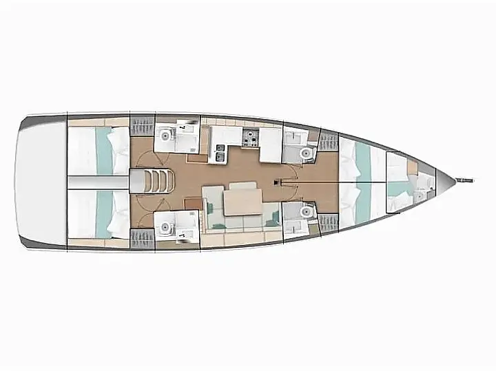 | Berths: | 12 (8 people in the cabins +2 in the saloon area +1 in the bow cabin) |