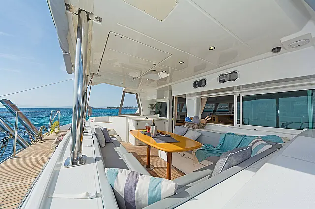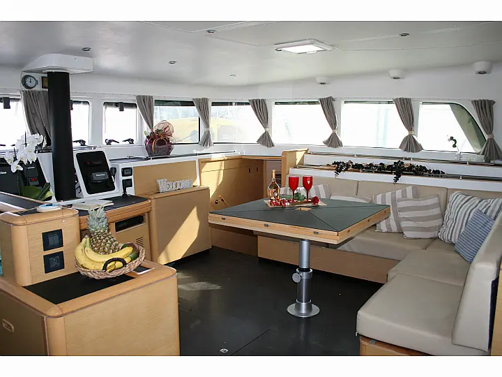Klimaanlage , Wassermacher , Lautsprecher im Cockpit , Heizung , Bimini , Badeplattform , Kühlschrank , Generator , Beiboot , Sprayhood
