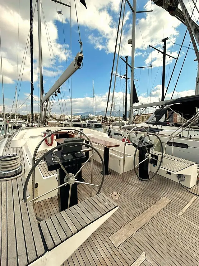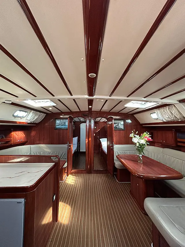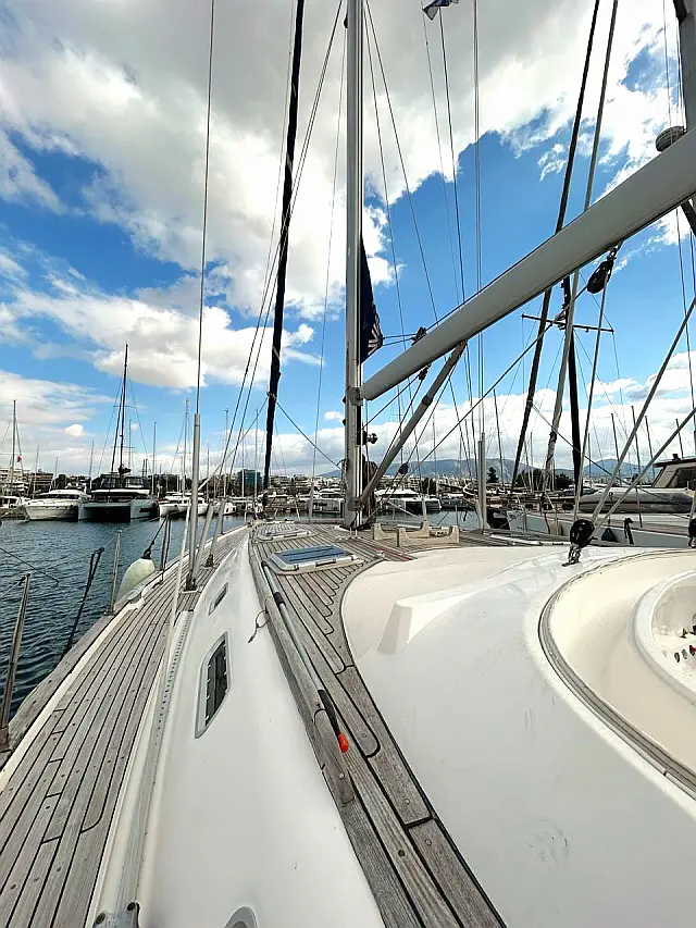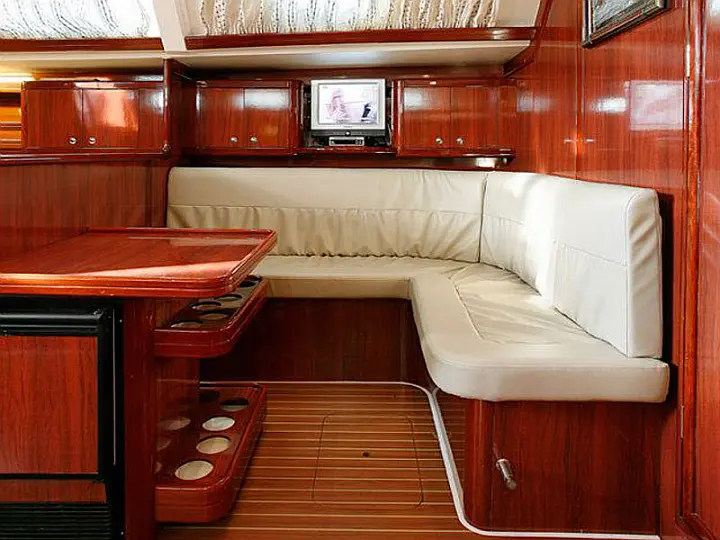 Klimaanlage , Solar-Panele , Beiboot , Lautsprecher im Cockpit , Heizung , Bimini , Teakdeck , Kühlschrank , Sprayhood